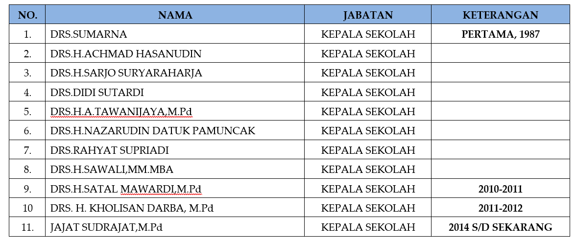 NAMA-NAMA KEPALA SMA NEGERI 1 PONTANG SESUAI PENGANGKATAN
